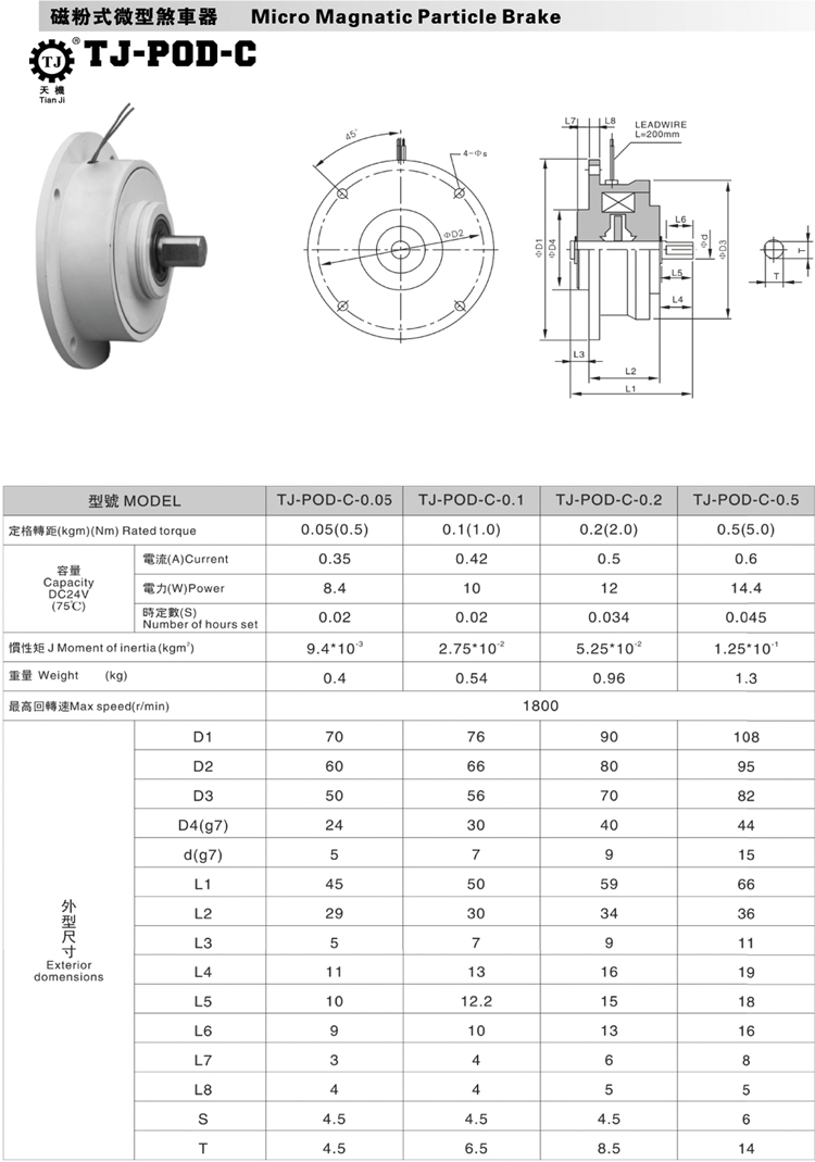 小型磁粉剎車器(微型磁粉制動器)特點: