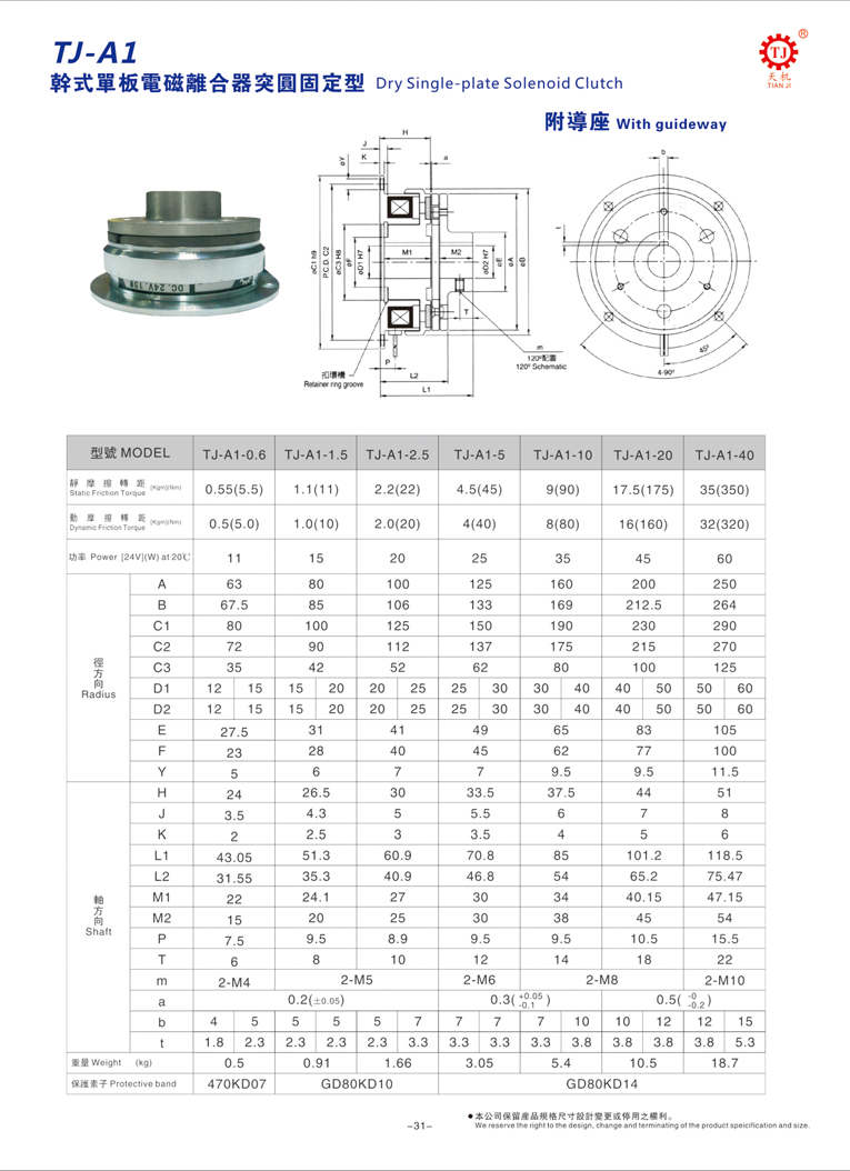 東莞天機傳動(臺灣天機牌)電磁離合器生產(chǎn)廠家制造銷售的單片電磁離合器又稱突圓型電磁離合器,對應(yīng)的型號是TJ-A1,主要由:軸承、線座、轉(zhuǎn)子、鐵片以及導(dǎo)座組成,其在傳動起的主要作用是啟動、傳送速度以及傳送方向等。廣泛應(yīng)用于機床、卷線機、紙箱機、印刷機、木工機、制紙機、沖床機、制袋機等自動化機械領(lǐng)域。